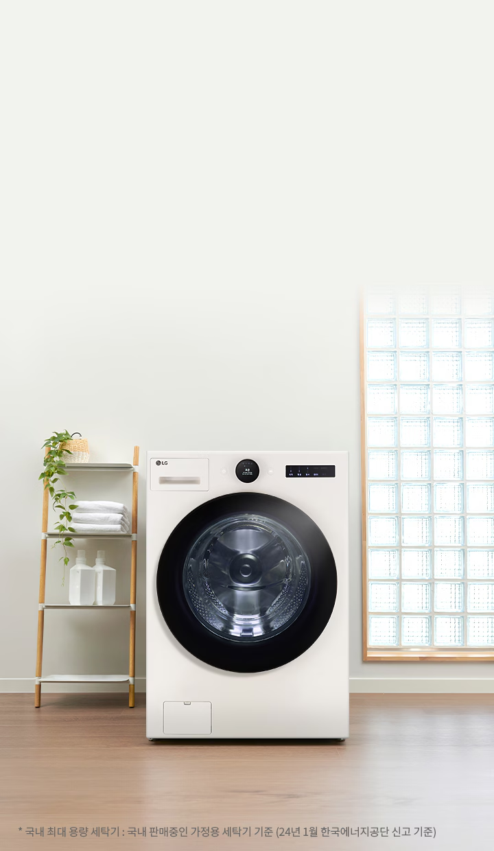 * 인터텍 시험 결과, 자사가 제시한 기준으로 북미 에너지 규격 시험 부하 3 kg, 표준 코스+터보샷 옵션 세탁 시 30분. 표준코스+터보샷 옵션 미적용 대비 물 사용양 30 %, 세탁 시간 24%가 절약되었습니다. (24kg 드럼세탁기 기준)