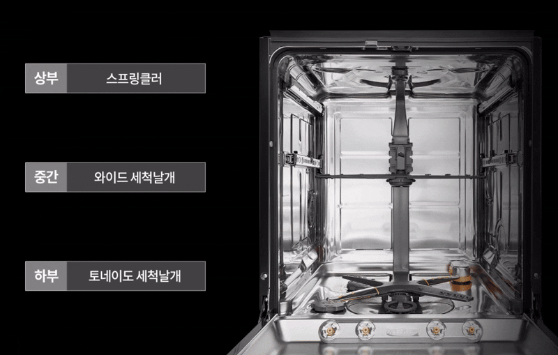 * 54개 입체물살은 상부 스프링클러, 중간 와이드 세척날개, 하부 토네이도 세척날개의 총 토출구수를 의미함