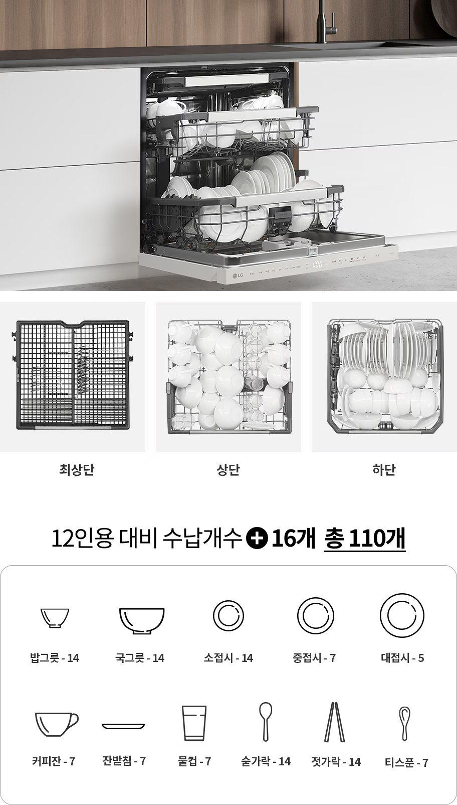 | 다용도 선반(3rd Rack) | O (높이조절) |