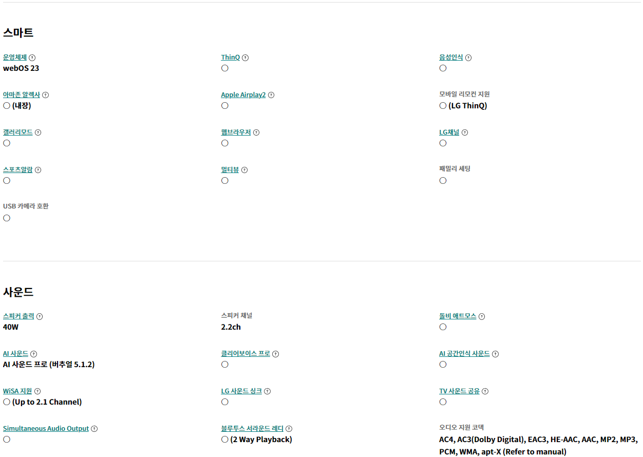 | 구성품 | 인공지능 리모컨 |
