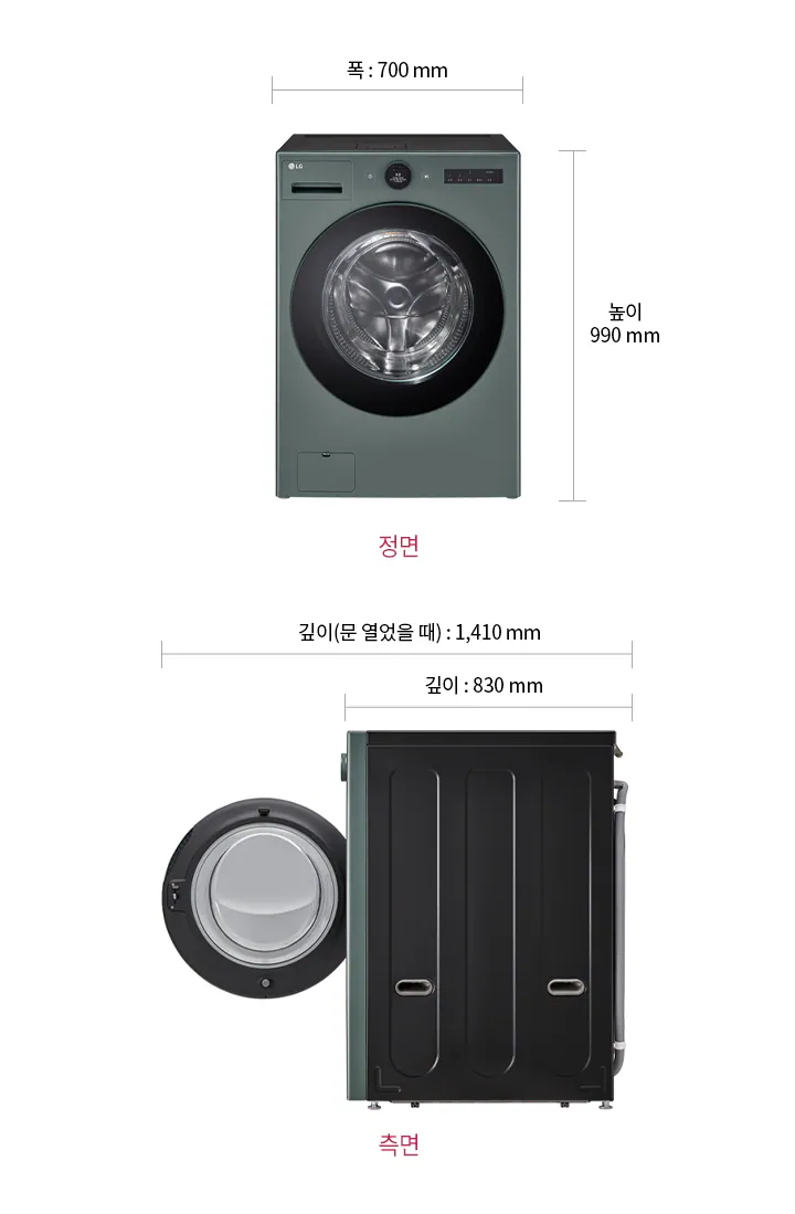 | 도어 열림 시 크기 (WxHxD, mm) | 770 x 990 x 1,410 |